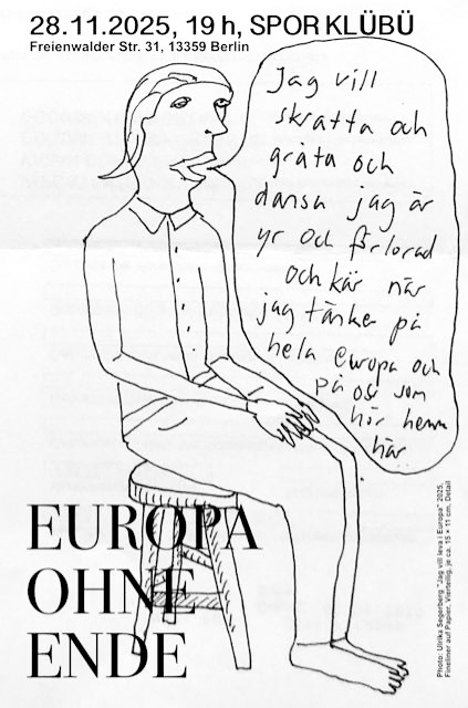 Anhand der zitierten Songtitel thematisiert die jährliche One-Night-Group Show im Spor Klübü das facettenreiche Thema Europa mit seiner breiten Debattenkultur. Wird Europa weiter zusammen wachsen? Wird die EU, der europäische Staatenverbund, sich selbst vernichten oder wird er durch äußere Einflüsse zerstört? Gibt es jenseits von Europa und der EU Ideen für weitergehende Konzepte? Was bedeutet der europäische Gemeinschaftsgedanken für unsere Identität? Zurück zur Musik. 2016 als Reaktion auf das Brexit-Referendum veröffentlicht Kae Tempest auf ihrem Album “Let Them Eat Chaos” den Song “Europe Is Lost” mit den Textzeilen “Europe is lost, America lost, London lost – Still we are clamouring victory – All that is meaningless rules – We have learned nothing from history…”