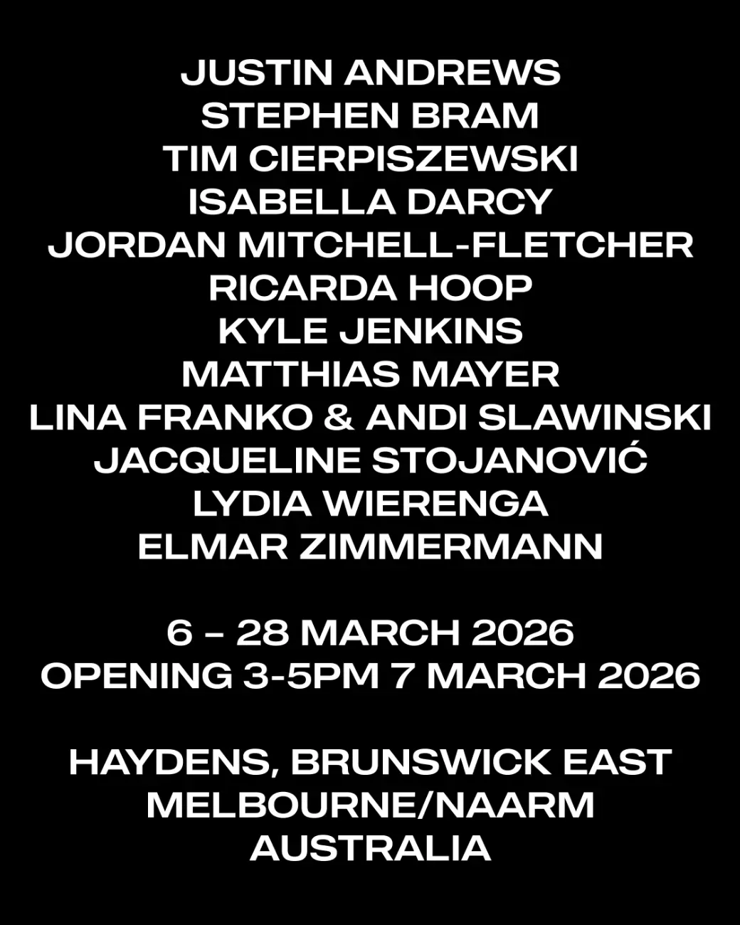 Mit Arbeiten von Fareed Armaly, François Joseph Chabrillat, Friederike Clever, Christian Flamm, Penelope Georgiou, Stefan Hayn, Fred Hugel, Jasmine Justice, Josef Kramhöller, Claudia Kugler, Jonathan Lasker, Tom Meacham, Klaus Merkel, Alfred Müller, Verena Pfisterer, Gunter Reski, Ketty La Rocca, Schleifschnecke (Jesko Fezer & Axel John Wieder), Emil Schumacher, Kurt Schwitters, Elmar Zimmermann, Peter Zimmermann