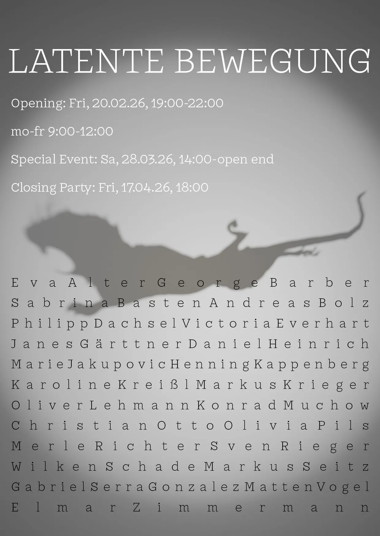 Marie Athenstaedt / Jérôme Chazeix / Tim Cierpiszewski / DAG / Manuela Fersen / Wilhelm Frederking / Ricarda Hoop / Andreas Keil / Martina Klein / Nina Maria Küchler / Onc Ysh / Jana Mertens / Mike Okay / Marten Schech / Franz Schmidt / Eva Schnitt / Stefan Schwarzer / Elisabeth Sonneck / Frederic Spreckelmeyer / Janine Tobüren / Elmar Zimmermann